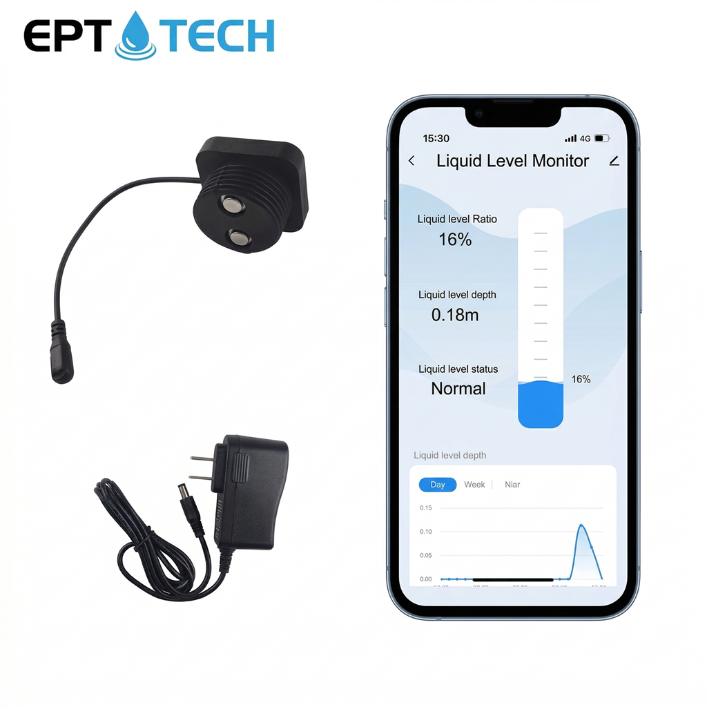 The TLC2326 smart water tank level monitor uses the ultrasonic principle to measure the water tank level.